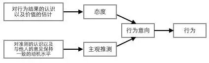 在这个理论当中,个人对特定行为偏好的行为意向会受到个人是否认同的态度及重要他人支持与否的主观推测二者或其中之一的影响,而行为意向又将进一步影响所表现的具体行为。若两者保持一致,则做出行为是必然,若二者矛盾,则取决于二者相互作用的相对强度。