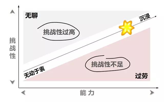 从上面这张图,我们可以看出,影响学生进入心流状态的因素,主要有以下两种情况。